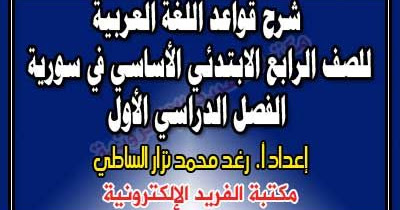 شرح قواعد اللغة العربية للصف الرابع الابتدئي الأساسي في سورية ـ الفصل الأول مكتبة الفريد الإلكترونية
